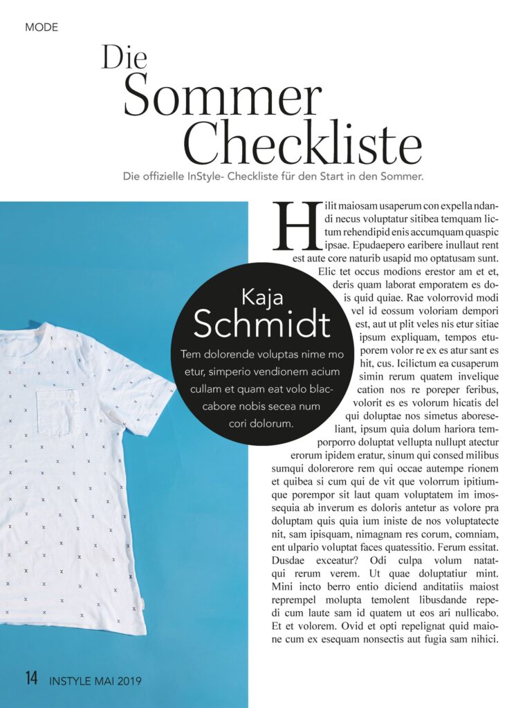 In einem Fachübergreifenden Projekt sollten wir uns ein gewöhnliches Kleidungsstück aussuchen und dieses im Rahmen eines InStyle Covers und Innenseiten abbilden.